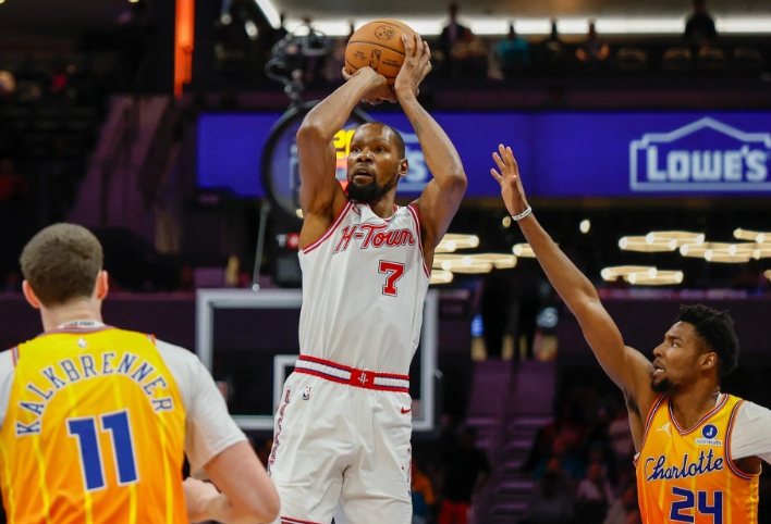 然后再来一个晃开杜兰特的后撤步三分,6得不行。